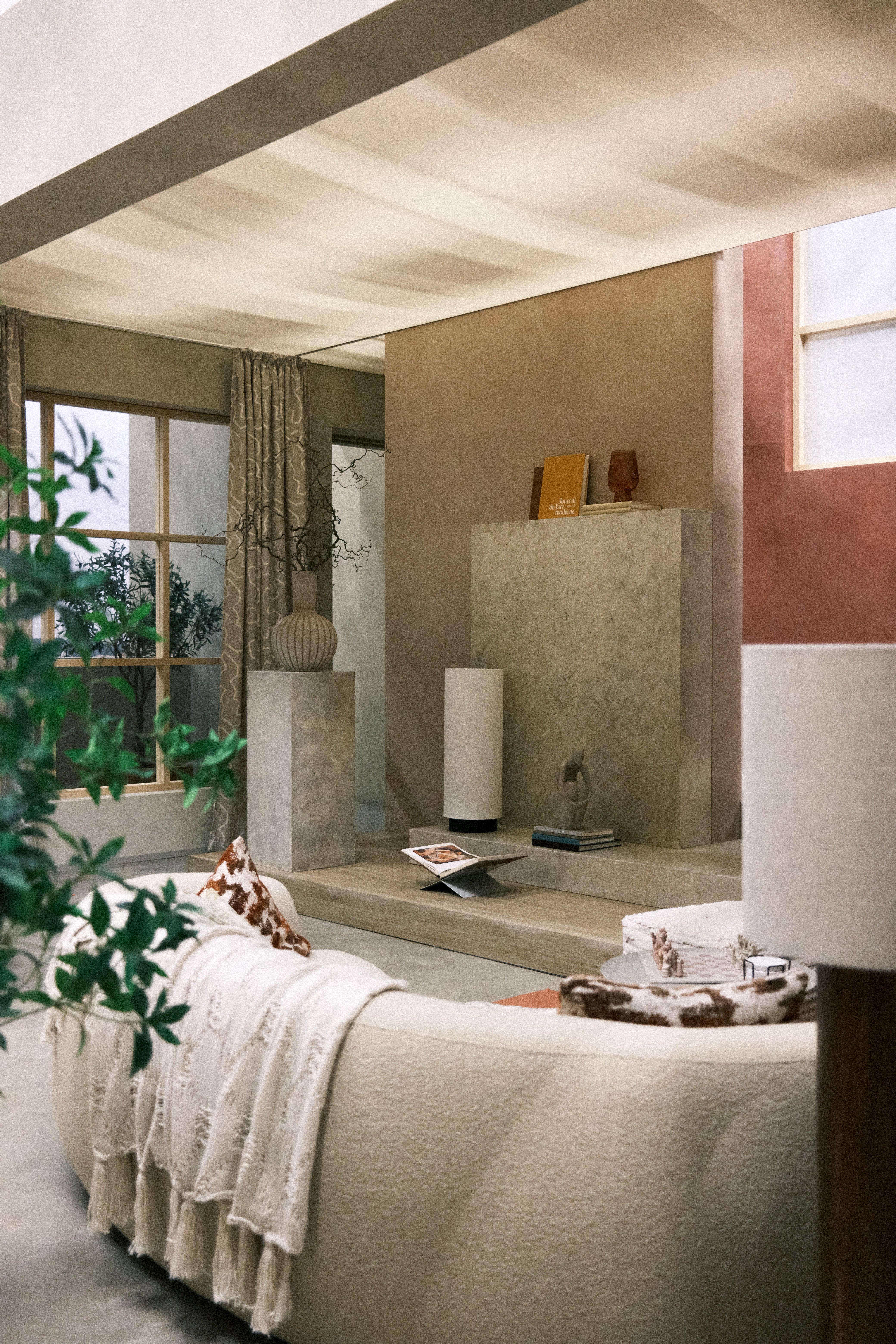 Jolien et Brecht ont décoré le salon de leur nouvelle maison à Zottegem avec des pièces élégantes de la collection Atmooz.