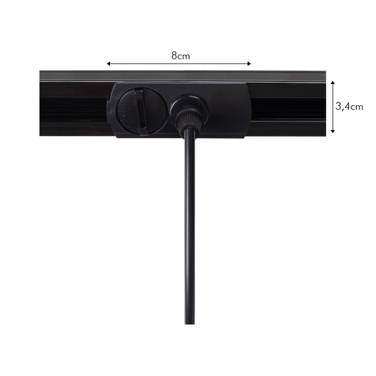 Des spots peuvent être ajoutés à un rail. Ces spots nécessitent des ampoules GU10 (non fournies). Le choix de l'ampoule dépend de la luminosité souhaitée et de la présence ou non d'un variateur. Le spot a un diamètre de 6,5 cm et une hauteur de 10 cm. Vous souhaitez ajouter une suspension à un rail ? C'est possible grâce à un adaptateur. L'adaptateur se clipse sur le rail. Commencez par connecter le câble d'alimentation de la suspension à l'adaptateur. C'est pourquoi nos adaptateurs ne sont pas fournis avec un câble séparé. Veuillez noter qu'il existe une limite de poids pour le luminaire.