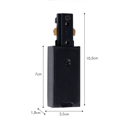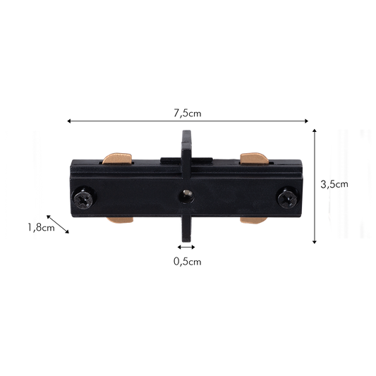 Elke rail meet 143 cm zonder afstandhouders of eindkap. Aan het uiteinde van een configuratie wordt één eindkap gemonteerd. Deze eindkap wordt standaard meegeleverd en kan niet apart besteld worden. Een rail kan met een ijzerzaag worden ingekort tot een formaat naar keuze. Elke rail is aan één zijde voorzien van aarding. Kies de bijhorende voeding. Bij een ‘dubbele voeding’ hoeft u hiermee geen rekening te houden. Bij een enkele voeding moet je kiezen of de aarding links of rechts moet gebeuren.