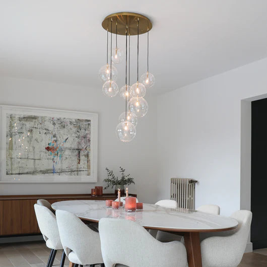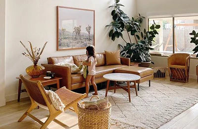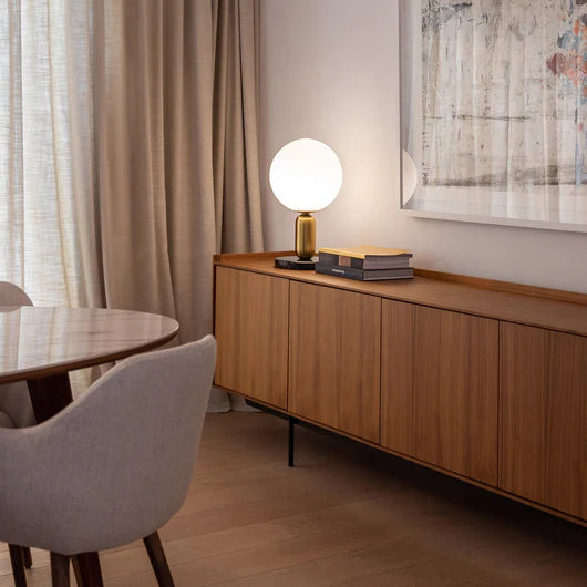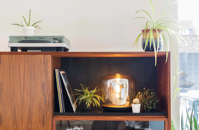 Bold lighting is another essential accessory to catapult your home into this artistic era. Look at a Mid-century modern home and you're sure to see dazzling modern marvels dangling from the ceilings or sleek side tables bathed in light. Unique hanging lamps and luminaires are not only functional, they are also an art form.