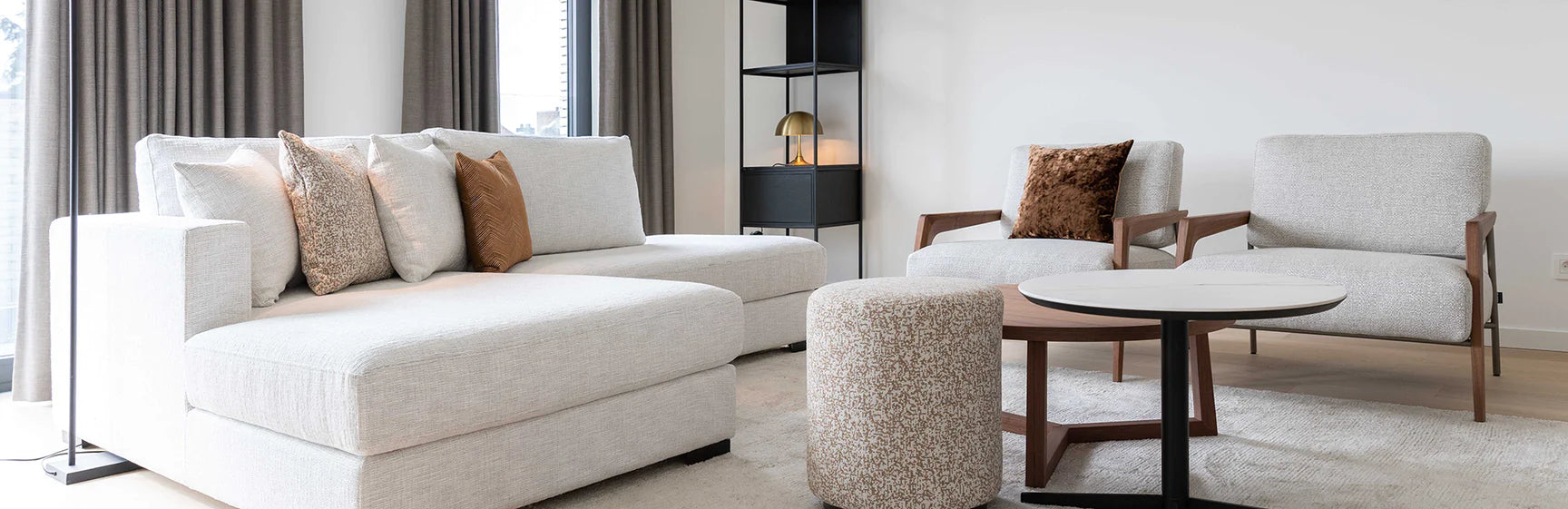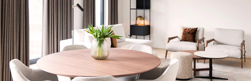 A Mid-century modern interior can be recognised by its clean lines, soft organic shapes and love for different, sometimes contrasting, materials. It is precisely this use of materials that made the designs so new, so progressive. The mix of traditional materials, such as walnut and leather, and less obvious materials such as metal, glass and even vinyl and plexiglass, breathed new life into the design world. All in all, the Mid-century interior usually starts with light and warm tones such as beige, brown and other natural hues. As an accent, you can push the boat out a little with this style. Think dark green, warm rust and salmon pink, pearl grey and last but not least... black & gold. Please note: This style is sometimes compared to Retro but it sets itself apart by avoiding bright surfaces and plastics.