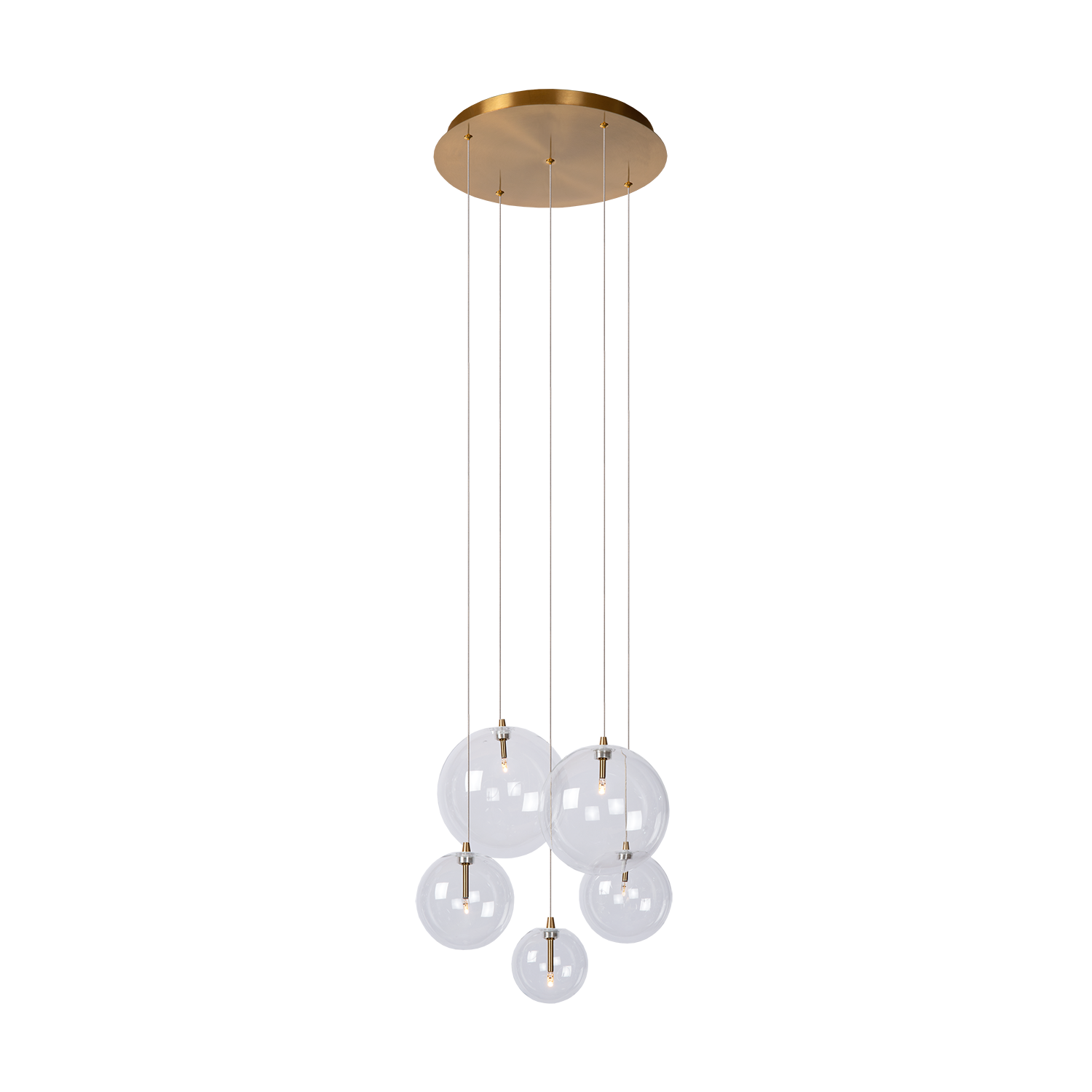 Discover project VME. An interplay of organic shapes, light shades and playful accents. Stretch out on the Abby sofa while admiring the eye-catcher of the room: Pendant Camau 9. The black & gold accents in de lamps make it complete.