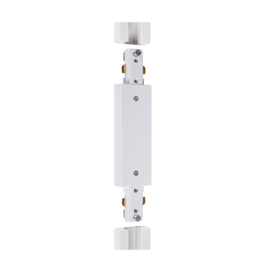 Each track measures 143 cm without spacers or end cap. One end cap is fitted to the end of a configuration. This end cap is included as standard and should not be ordered separately. A track can be shortened to a size of your choice using a hacksaw. Each rail has earthing on one side. Choose the power supply accordingly. There is no need to take this into account in case of a ‘double feed’. For a single feed, you have to choose whether the earthing should be on the left or on the right.