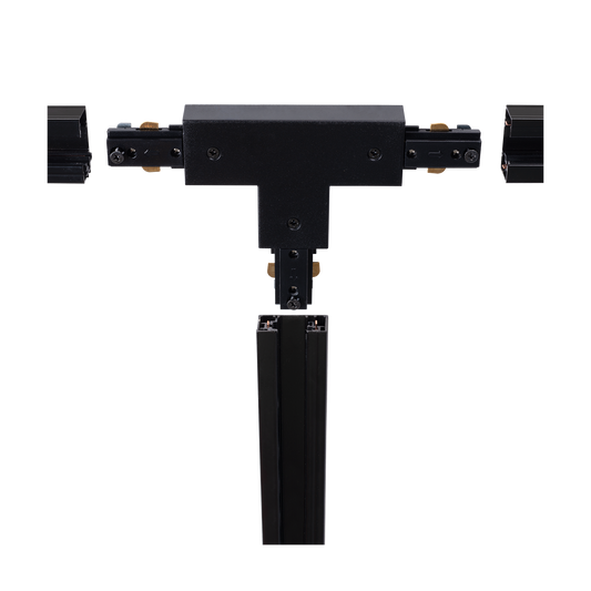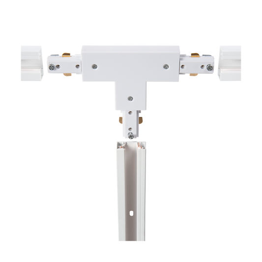 All the components of a track lighting system contain conductors and earthing. The earthing is on one side of the track, and that’s why it is important to know which side the earthing is on in your configuration. You should take this into account right from the start, when deciding on your configuration, to make sure you order the right components. This is especially important for the L-shape and T-split connectors. When configuring a straight track without angles, you do not need to take earthing into account.