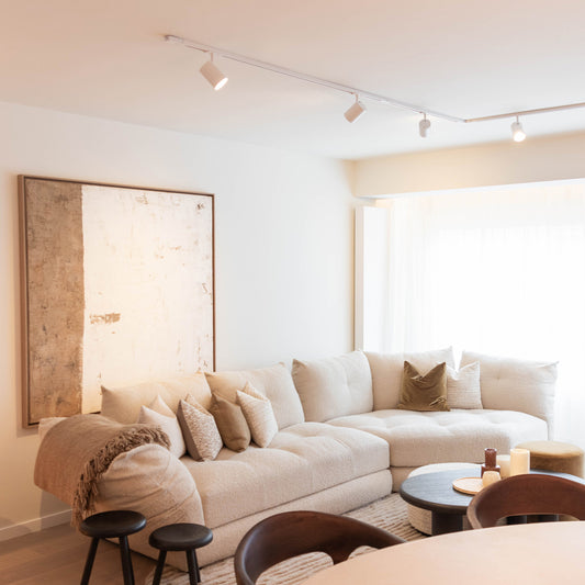 No cutting or chasing in required, as the tracks are mounted on the ceiling. The tracks can also be fitted with a pendant - useful for very high or uneven ceilings. The tracks can take as many spots as you want and each can be angled individually. It means important areas can be illuminated, such as a dining table, kitchen worktop, TV corner, painting or artwork. The possibilities are endless. Different light fitting can be attached to the track, such as pendants, using a connector.